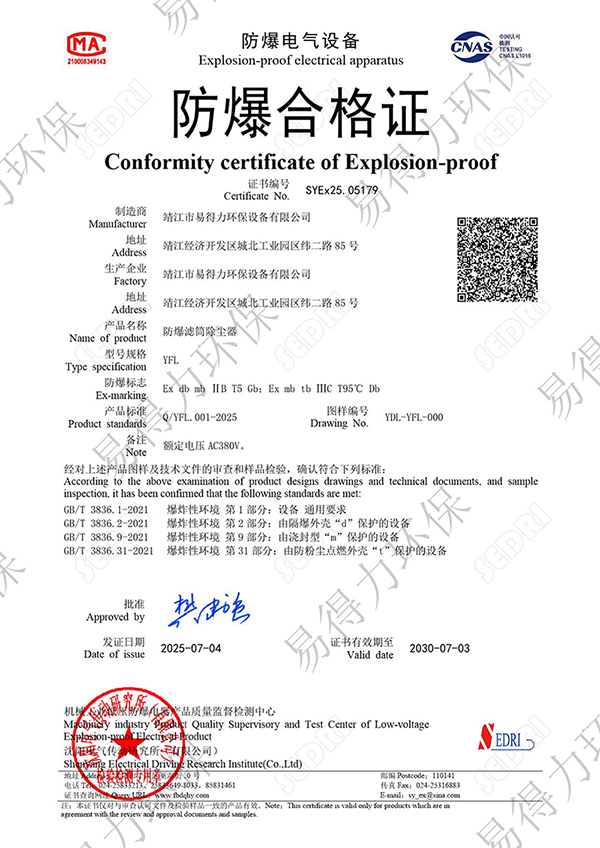 • YFL濾筒防爆除塵器YFL濾筒防爆除塵器